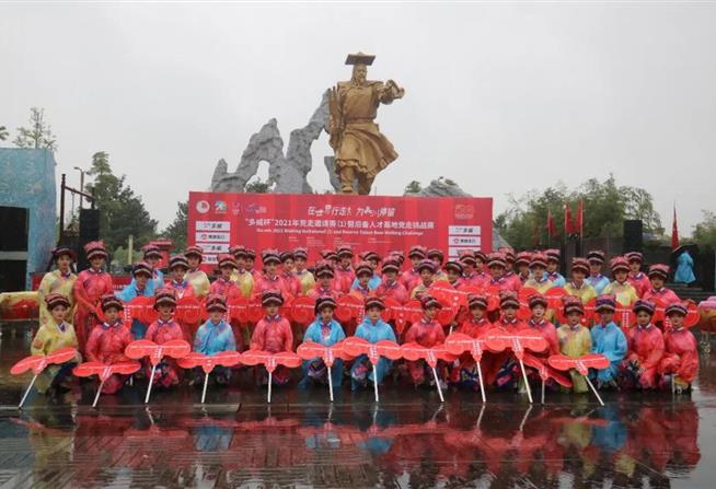 4月9日上午伴随着春雨,2021年竞走邀请赛(1)暨后备人才基地竞走挑战赛在四川省绵阳市北川羌族自治县隆重举行开幕式,52名绵飞学子作为52支参赛代表队举牌礼仪亮相。
