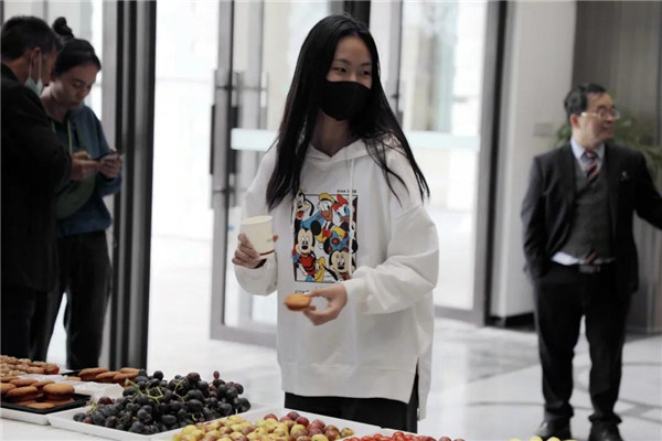 休息区备好了精致的糕点、饮料