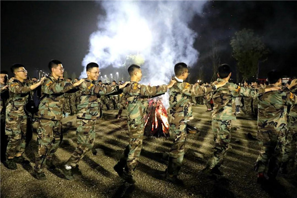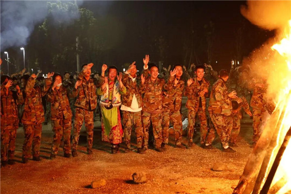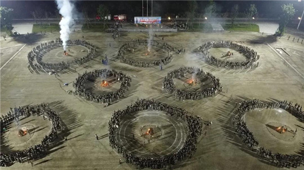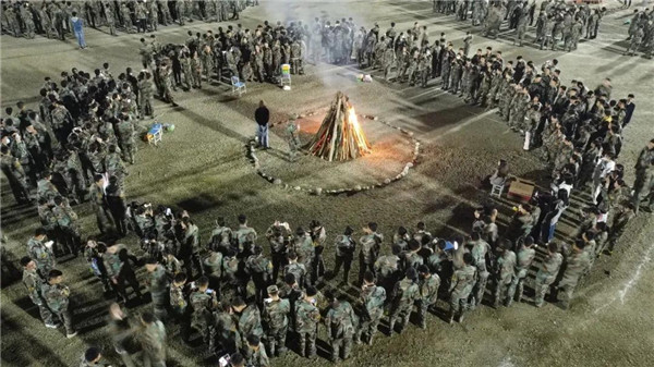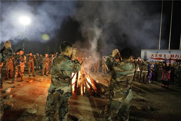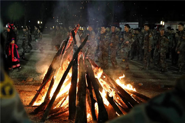 篝火是传统的欢庆形式,熊熊燃烧的火焰象征了羌族人民对美好生活的期盼与向往。院校领导、学员队总参和学生代表一起点燃篝火🏋🏼👍🏼。