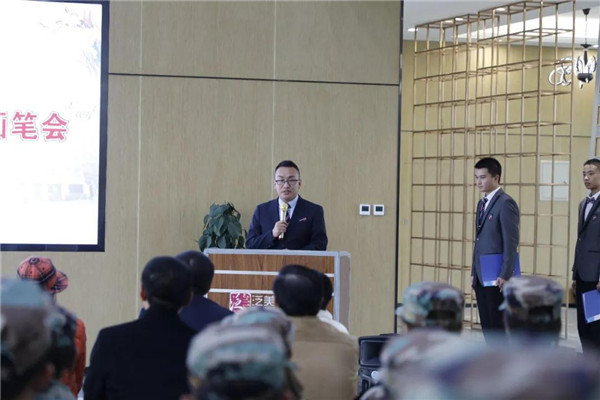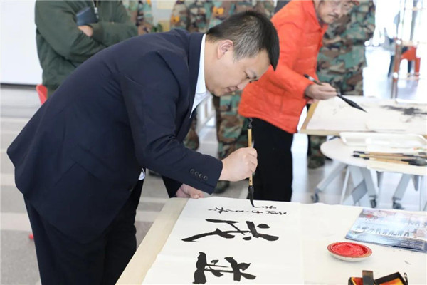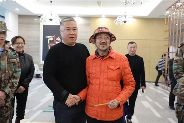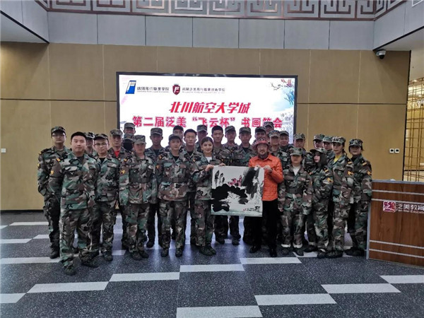 笔会开始前,绵飞院梁国辉副院长热情致辞,欢迎艺术家莅临现场。绵飞院党委书记资建民、李选华副院长、绵飞校鲜继培副校长、单招霞副校长等参加了书画笔会。