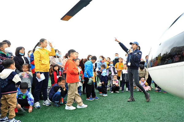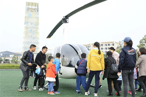 不少小营员和父母还兴致勃勃地报名,体验了一把直升机空中飞行,俯瞰网红飞行学院。