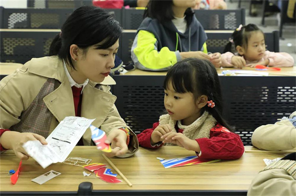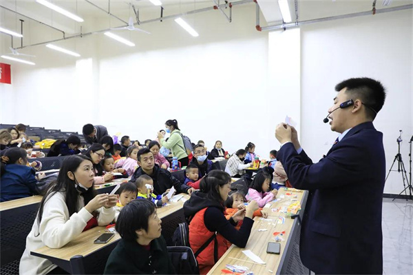 龙堡一楼阶梯教室,魏煜宸老师讲解飞行基本原理,分步骤组装航模。操作自己“制造”的小飞机飞向蓝天,孩子欢呼雀跃,别提有多开心了~~