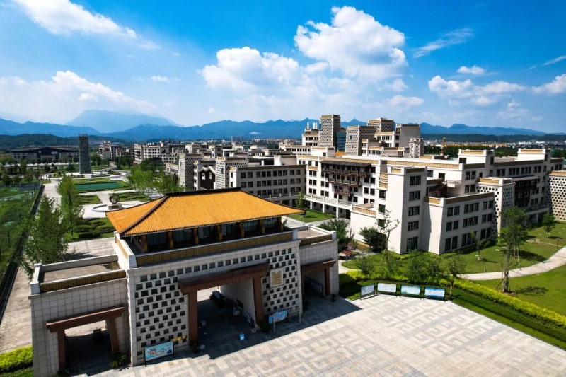 学院位于国家 AAAAA 级旅游景区中国科技城 (北川)航空城,是北川羌族自治县重点建设项目“大美羌城——泛美航空科技城”的核心部分,校园建筑规划设计理念回归大夏文化的起点,吸收羌文化民宅、藏族布达拉宫、汉族传统建筑的建筑艺术精髓,依托“泛美航空科技城”3000 亩开放景区,汇聚世界雕塑巨擘,倾力打造独具特色的“禹羌”文化主题雕塑公园,旨在弘扬民族文化,打造一所集航空文化、羌文化等相结合的传奇大学。