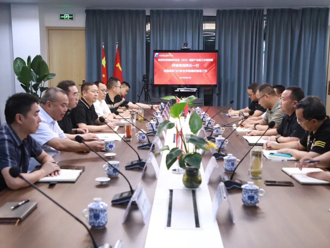绵阳科技城(北川)通航产业园工作指挥部指挥长符峻烽一行来学院指导调研