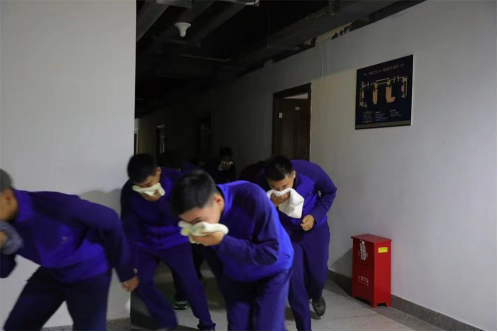 当日下午,随着消防警报的响起,演练正式开始。全体师生迅速行动,按照预定路线,用湿毛巾捂住口鼻,弯腰低头,快速有序地撤离宿舍楼。在到达安全地带后,各班参谋长迅速清点人数,确保每一位师生都安全撤离。