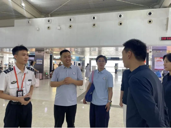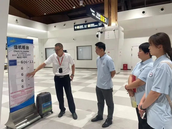 自7月11日报到起,教师们每天全天候跟班学习,严格遵循“双挂职管理”与“双师型培养”交织的日程安排👮🏽♀️,以“岗位实操+管理研习”双线并行模式,解码机场运营逻辑与岗位实践标准🚵♀️,迅速融入机场繁忙的日常工作中。