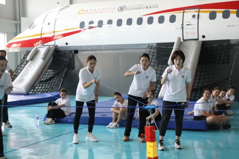 为增加空乘教师之间的沟通和交流,增强团队的凝聚力𓀙、向心力📝,17日下午🏃🏻♂️➡️,素质提升培训开展了拓展活动,四川西南航空职业学院空保学院副院长王子翔作为拓展教官将挑战带到现场👨🏿🦲,全体空乘教师在实践中体验,恣意挥洒汗水,拼搏永不服输!