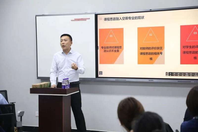 培训最后,围绕课程思政视域下空乘专业培养模式的创新,职业教育新形式🤹🏿、新业态下空乘专业教师必备的素质,民航规章与空乘专业教学的融入等主题,各小组代表纷纷上台说课,空乘教师们从整体课题设计、科研实施过程4️⃣⛓️💥、具体推进措施等一一进行了分析👌,并对“科研需要”“研究思路”“科研目标的确定”“方案选择与制定”等具体内容进行了详细讲解👨🏿🎤。