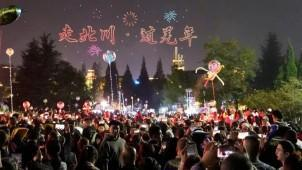 当天19时40分,禹王桥畔🖥,千架无人机腾空而起⛹🏽♀️,吸引众多游客驻足🍫。红色羌年夜空中,千颗“星辰”移形换影🙎🏻♂️,编织出一幅幅绚丽的画卷🥰。表演以“云上北川”logo为序💪,继之以“走北川,过羌年”字样👴,热情迎接四方宾客。