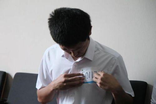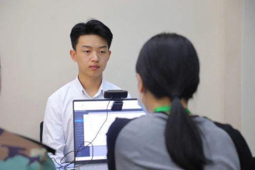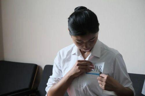 面试现场,同学们有序在行政楼大厅集合,现场编号🔨、佩戴号码牌并依次进行身高测量。通过身高筛选的同学十人一组🤳🏽🎙,依次进入面试室。