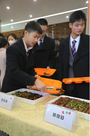 此次选餐会的膳食涵括五湖风味,有独具北川特色泡椒芋丝、富有北方风味的地三鲜🦯、松软可口的西式糕点、飘香十里的烧烤等几十种菜品🚶🏻♂️➡️☝️,赢得现场试吃师生的纷纷点赞。“我最喜欢吃的是这个毛血旺,鲜辣咸香🤾🏼♀️,有一种吃小火锅的感觉。”23级休闲体育1班的王帅同学将手中投票贴纸为毛血旺贴上了一票。