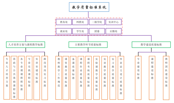 3.教学建设质量标准包括专业建设标准🦦、课程质量标准🙅🏻♀️、教学团队建设标准。通过完善专业建设评价标准,分类开展专业建设成效评价🏕🩼,促进各专业凝练特色,内涵式发展。通过制订课程质量标准,规范课程的开设与设置🤌🏻,促进优质课程建设。通过制订教学团队建设评价办法,培养可持续发展的教学队伍,促进教师整体教学水平提升🏋🏿♂️。